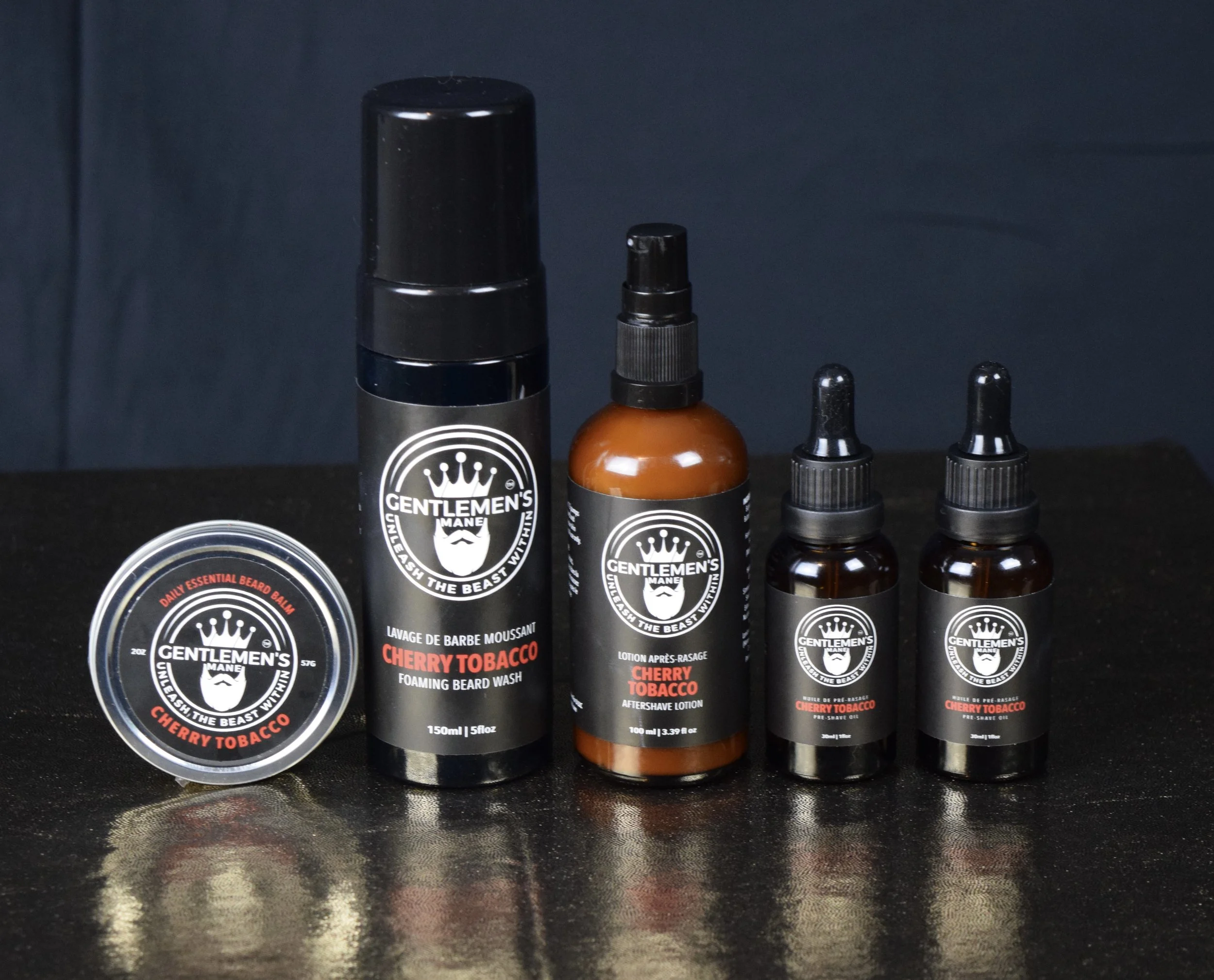 Bold, smooth, and refined. The Cherry Tobacco collection combines deep, masculine aroma with 100% organic grooming essentials built to strengthen, condition, and invigorate.